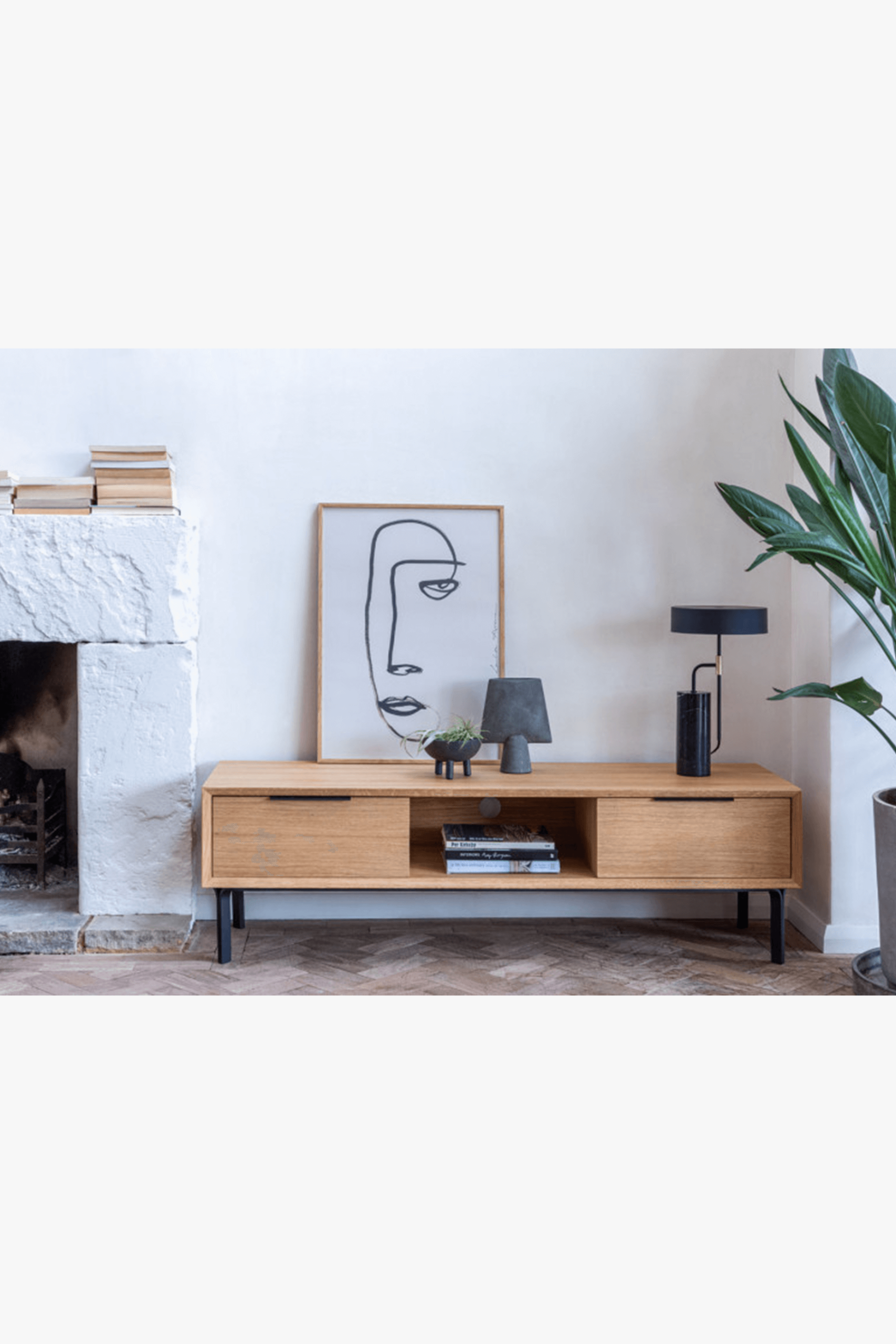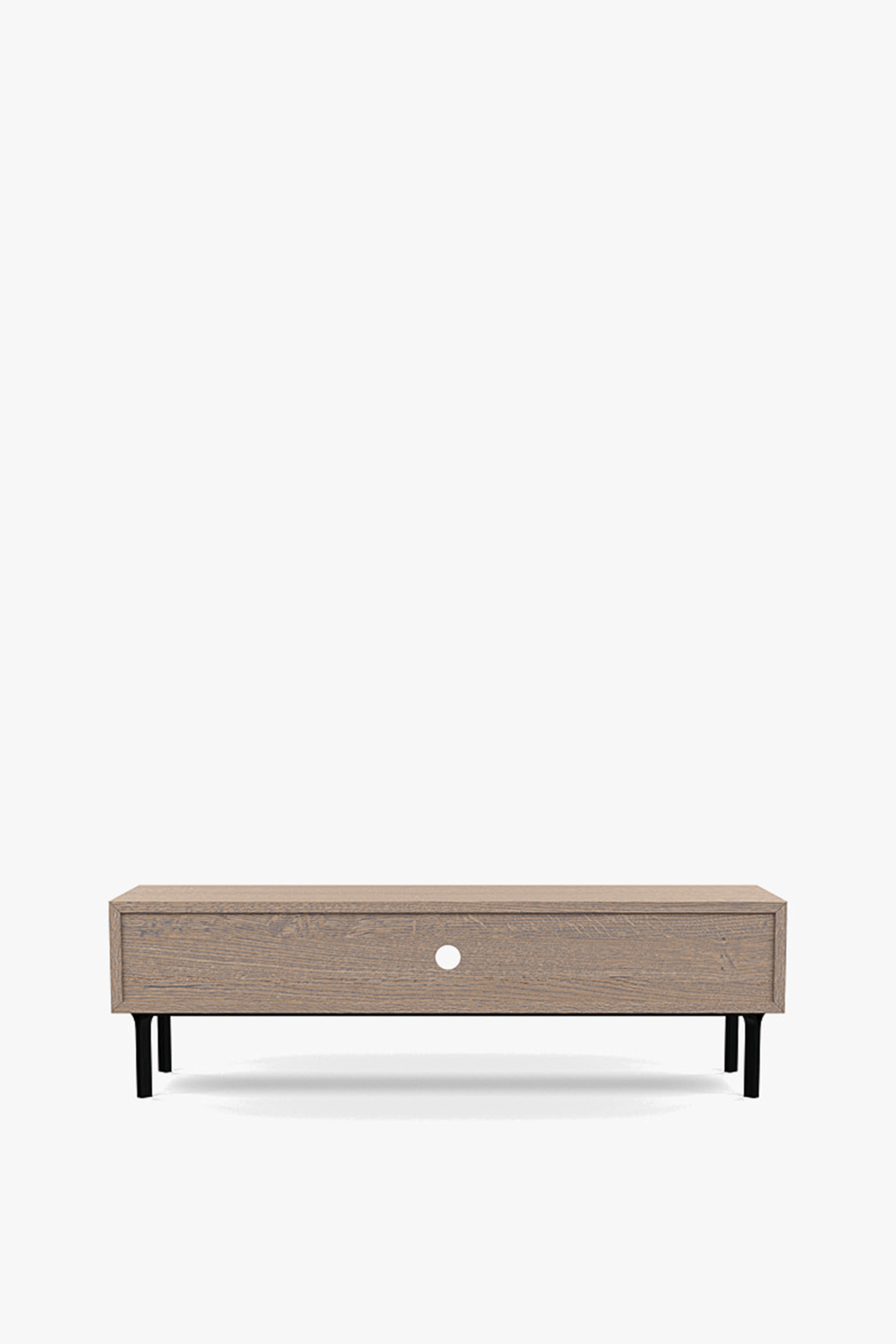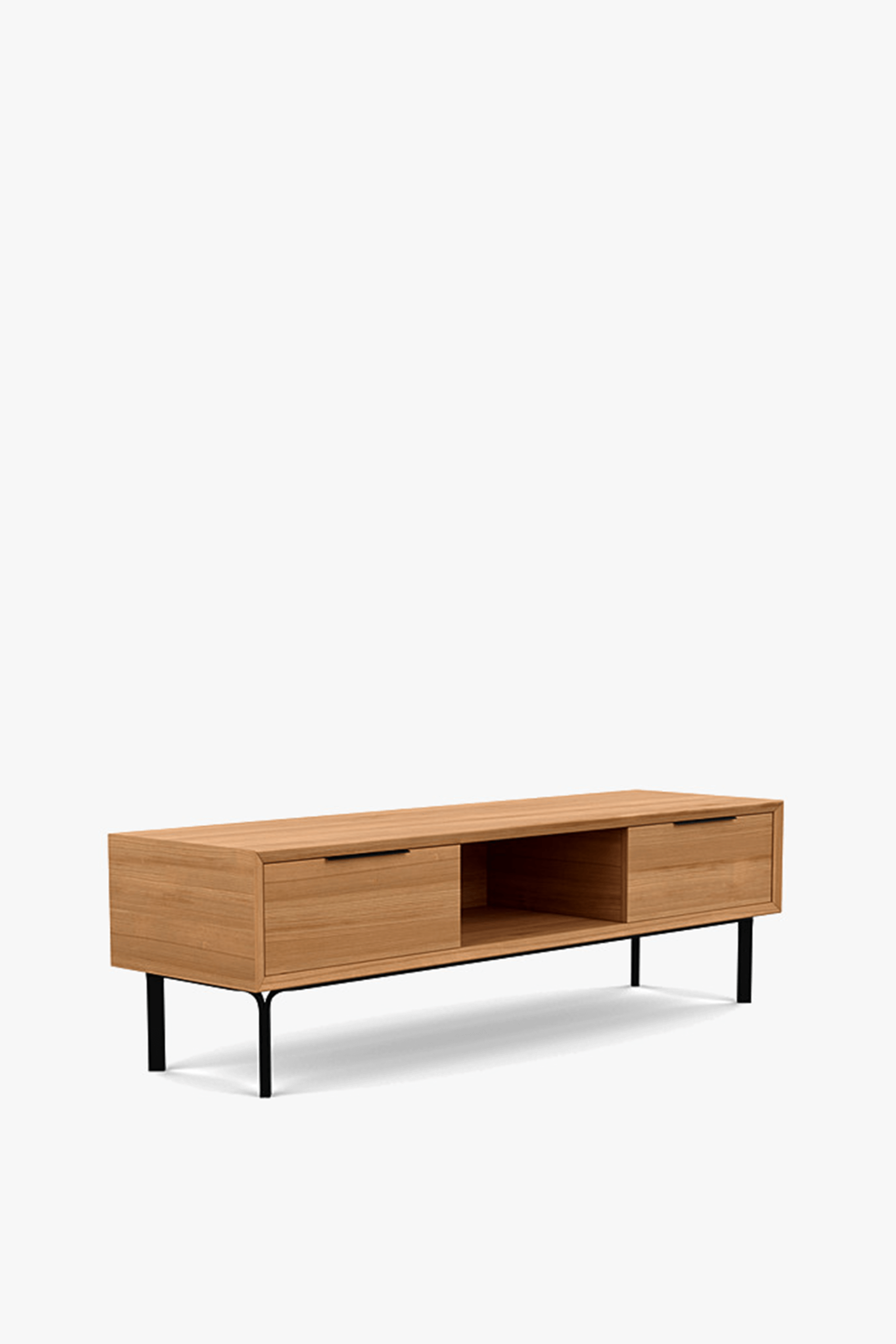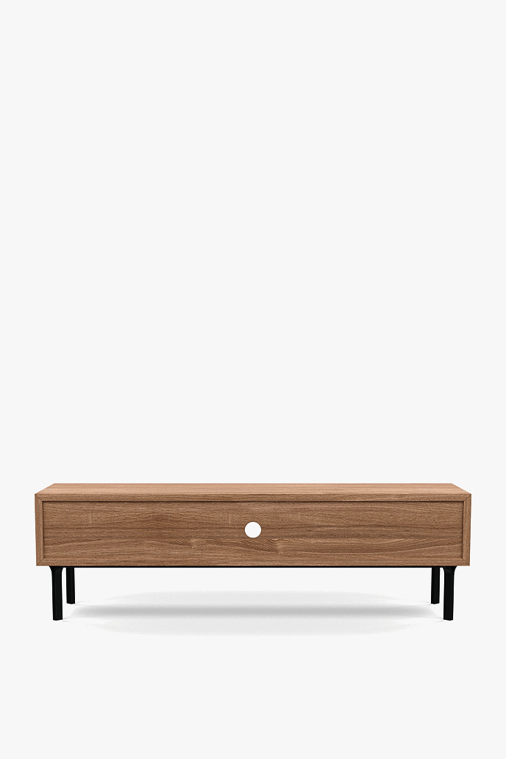 Created exclusively for Heal’s by British designer Noel Batt, the Stockholm AV Unit is available in a selection of oak and walnut finishes. Solid wood and veneers mixed with expert craftsmanship lend the unit a luxurious finish, whilst the sleek metal accents and mitre join leg that adorn the front of this sideboard, lend it a refined and contemporary finish. Stockholm will make a refined yet practical addition to your living room thanks to its two cupboards, open shelf to hold your media devices and concealed cable outlet.
