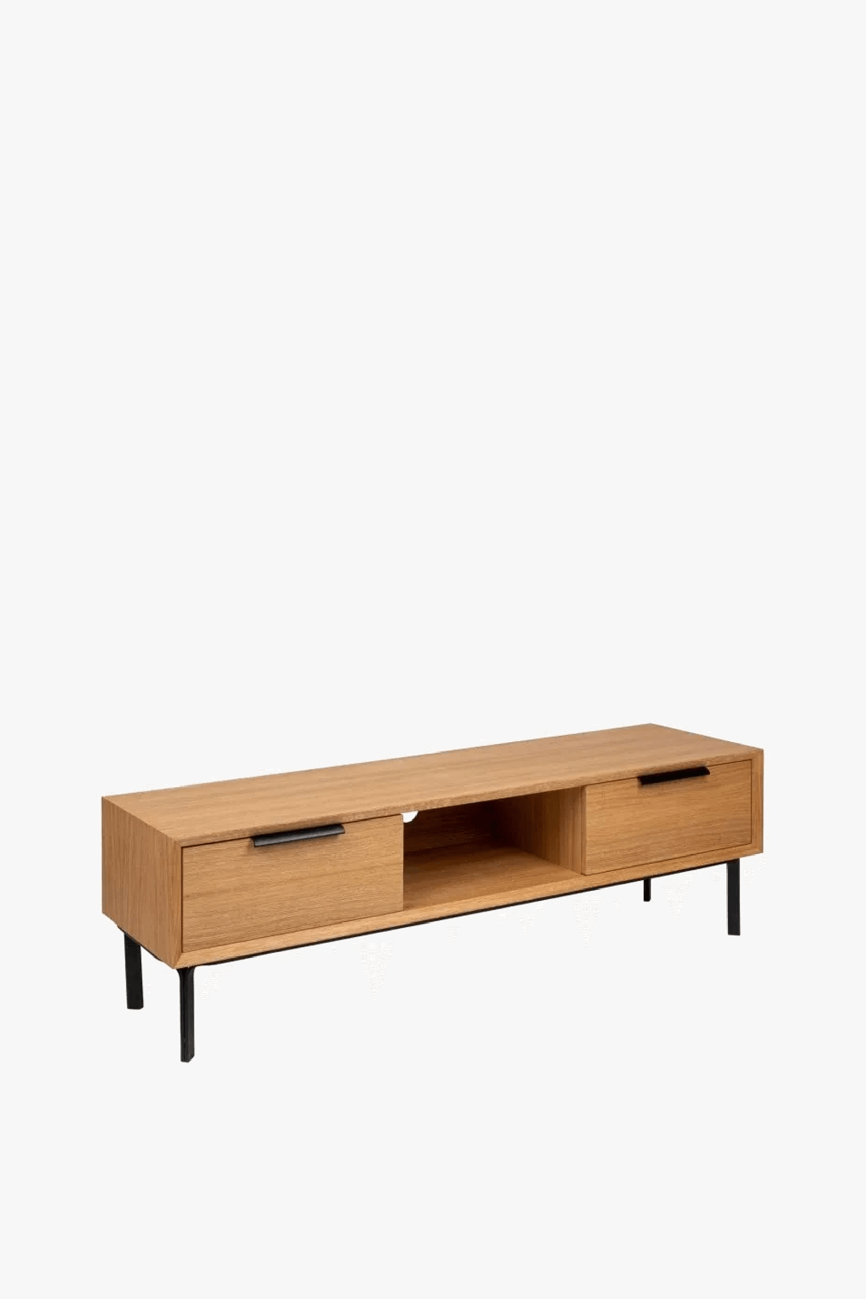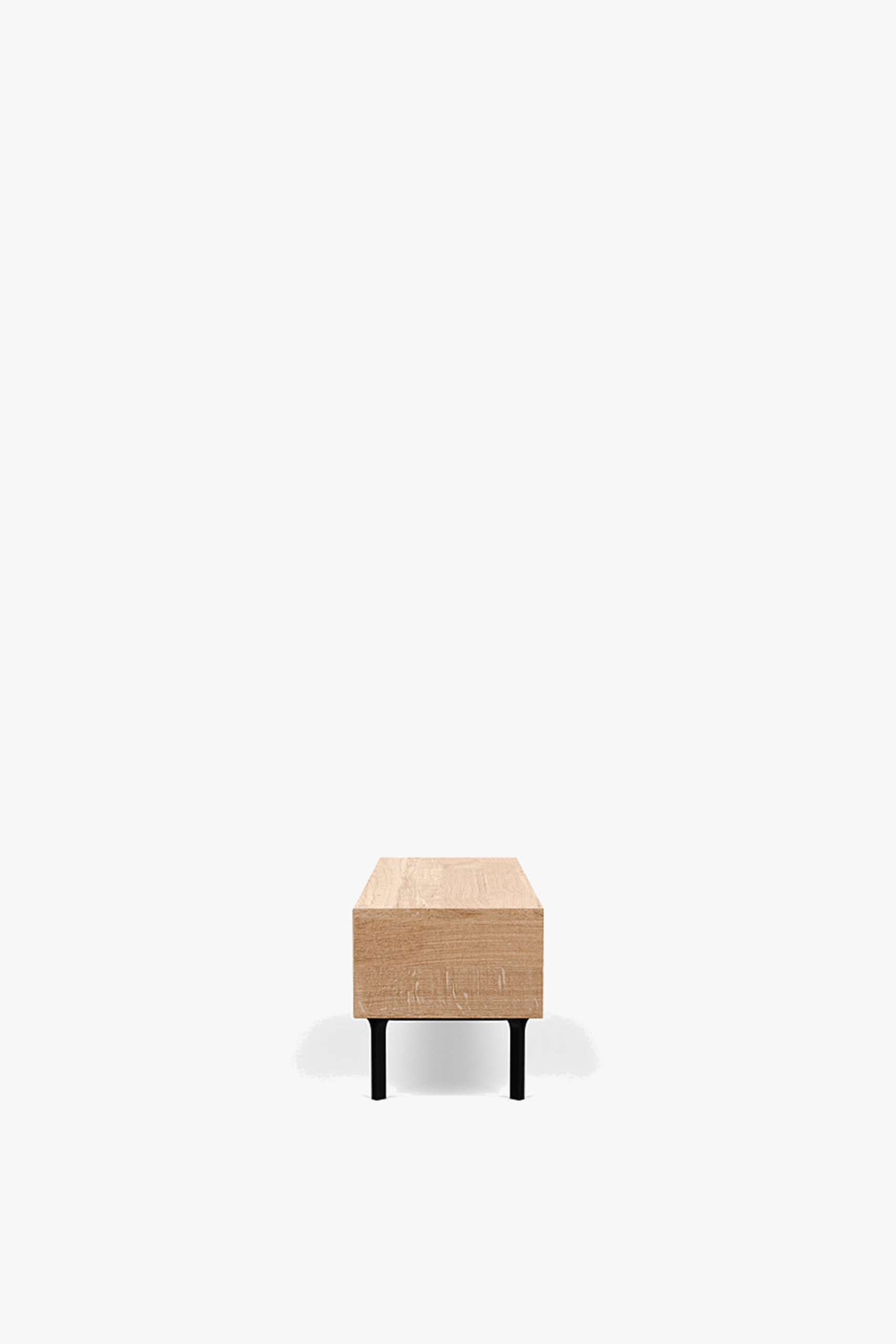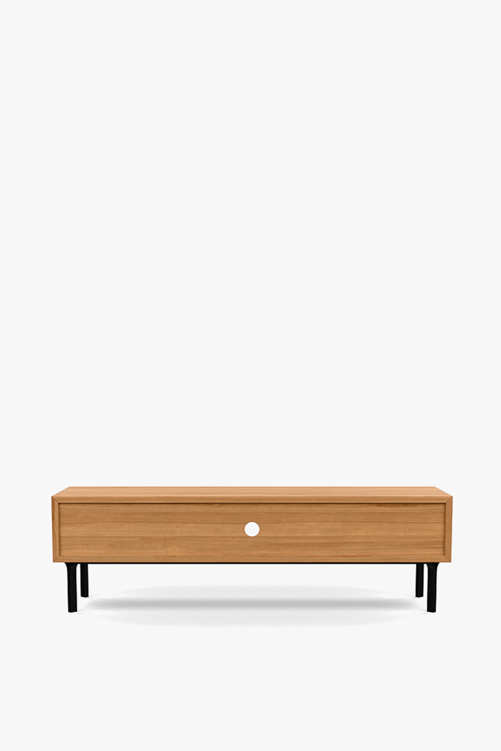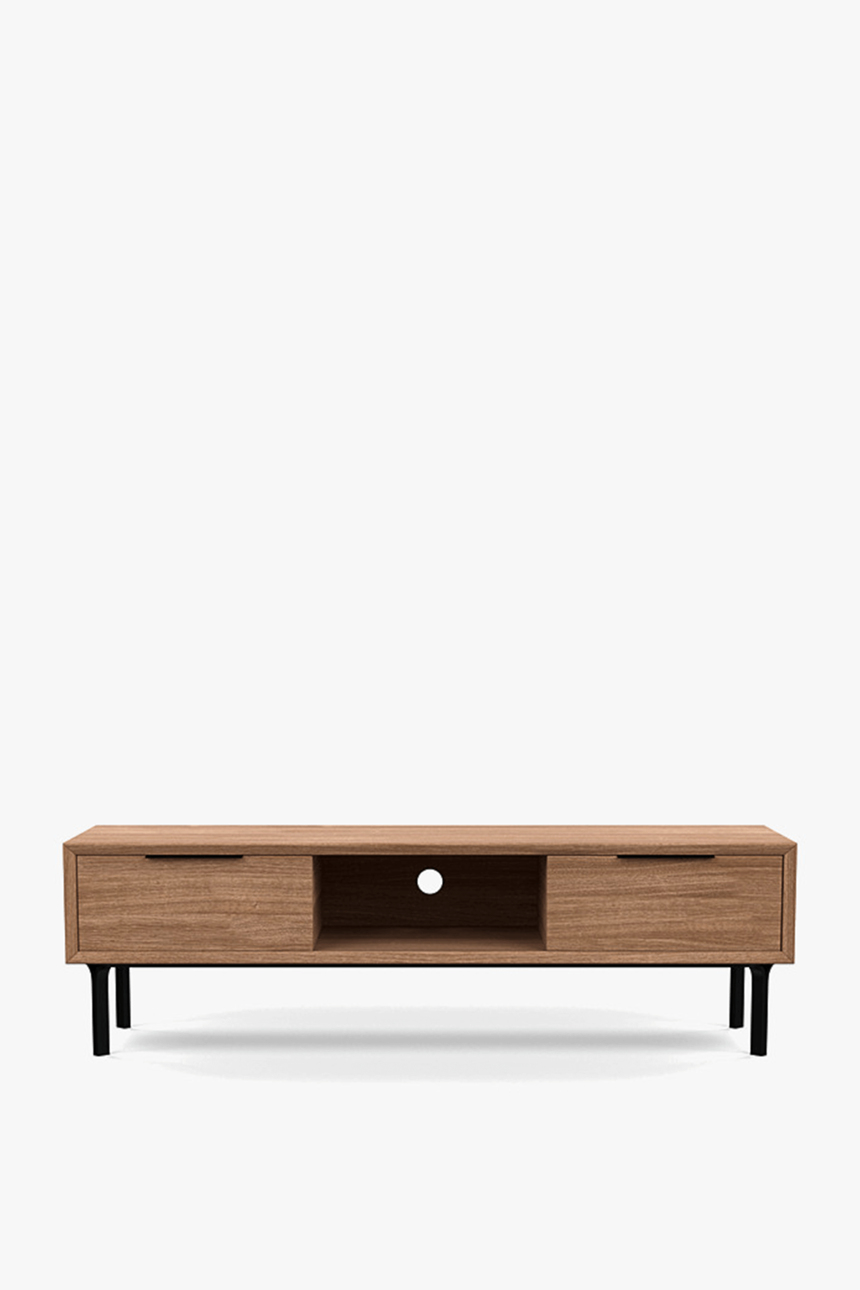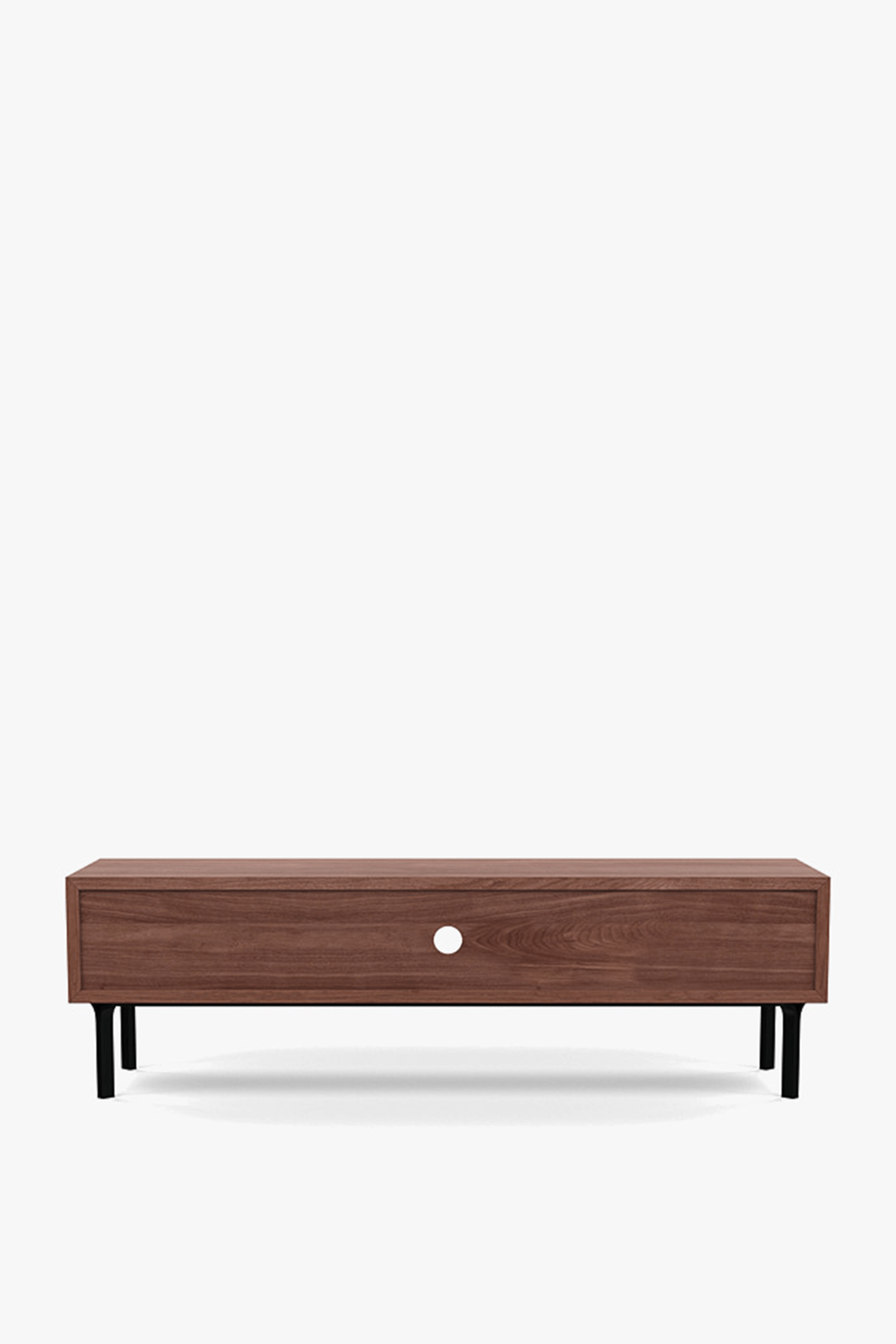 Created exclusively for Heal’s by British designer Noel Batt, the Stockholm AV Unit is available in a selection of oak and walnut finishes. Solid wood and veneers mixed with expert craftsmanship lend the unit a luxurious finish, whilst the sleek metal accents and mitre join leg that adorn the front of this sideboard, lend it a refined and contemporary finish. Stockholm will make a refined yet practical addition to your living room thanks to its two cupboards, open shelf to hold your media devices and concealed cable outlet.