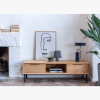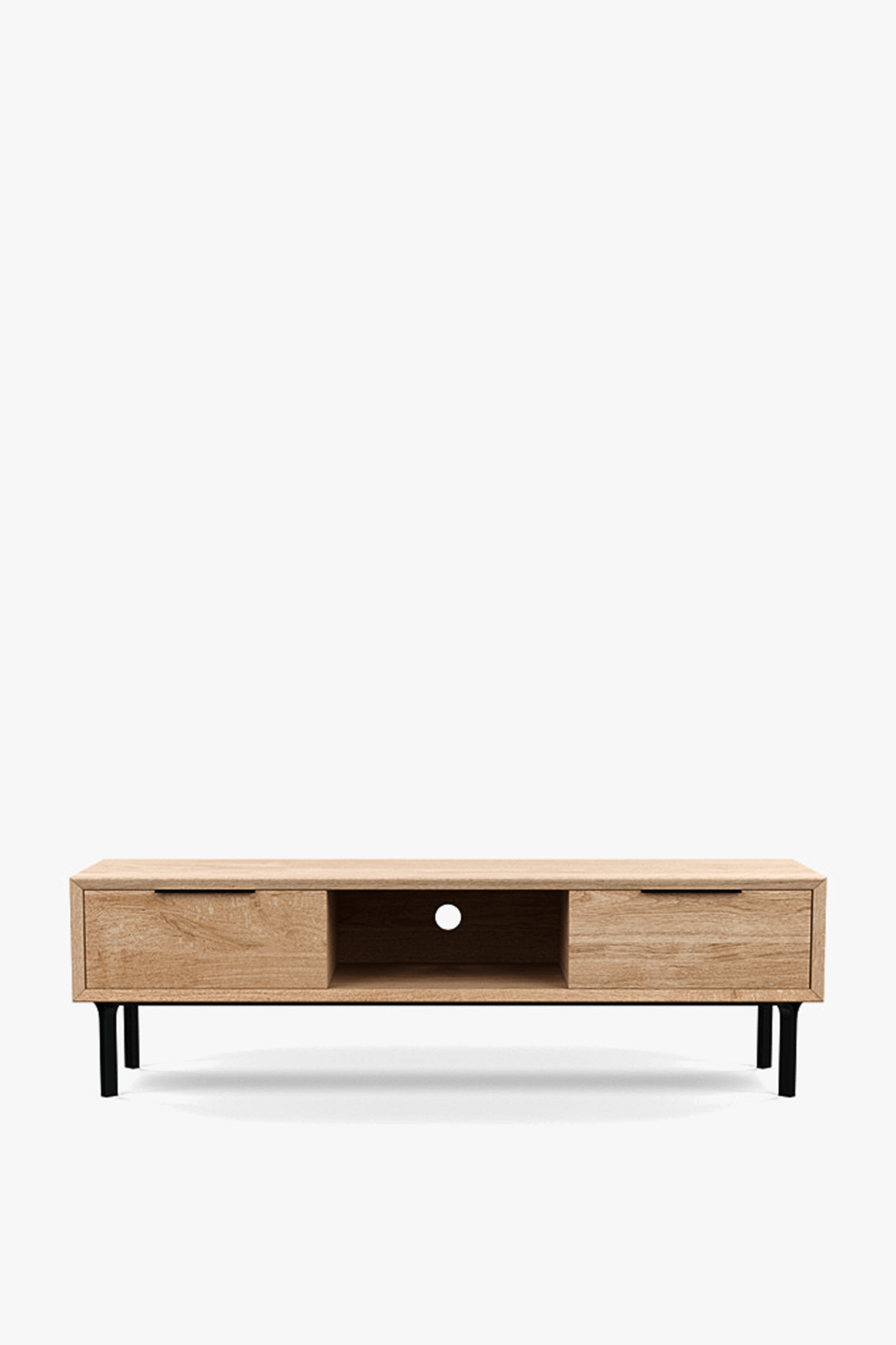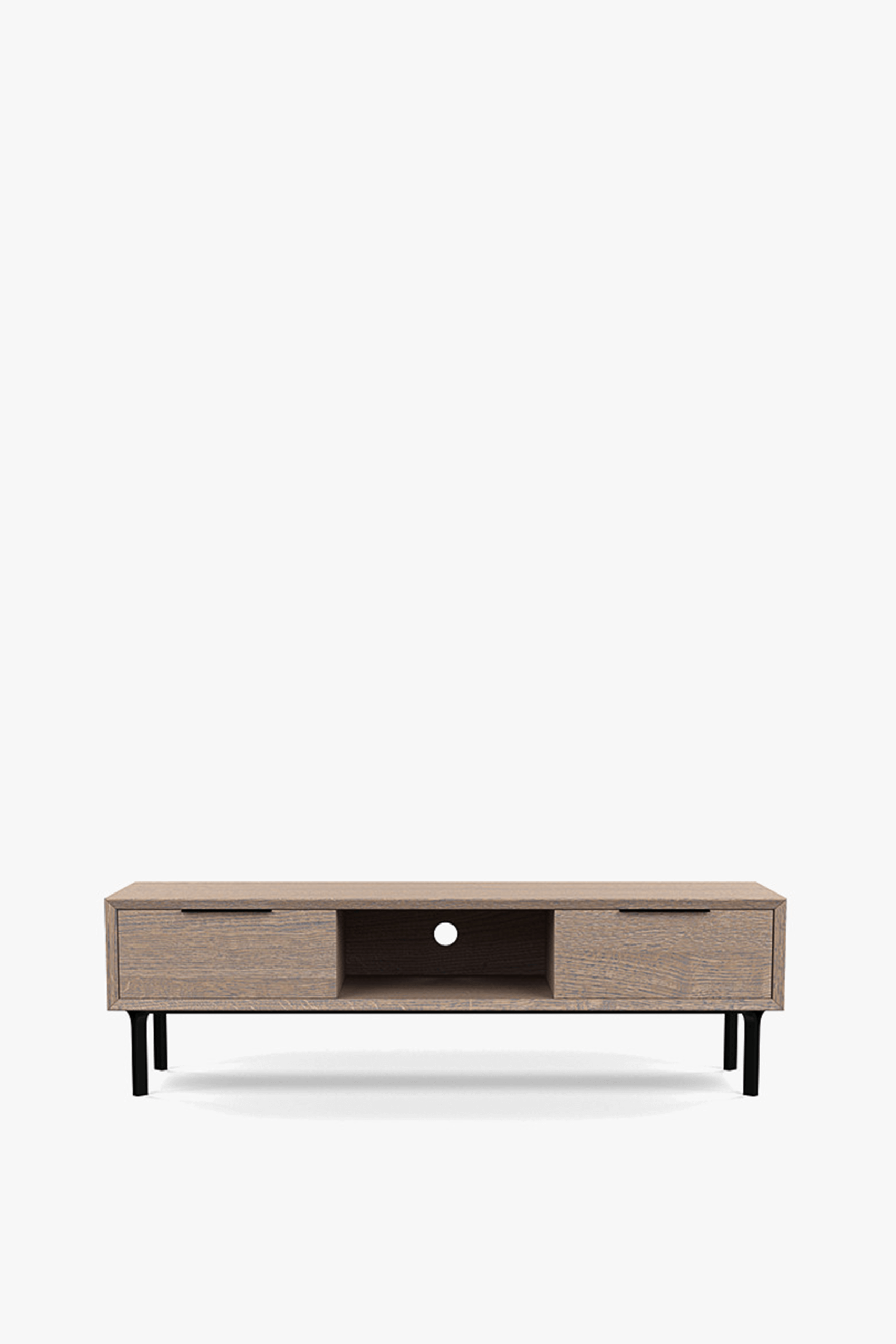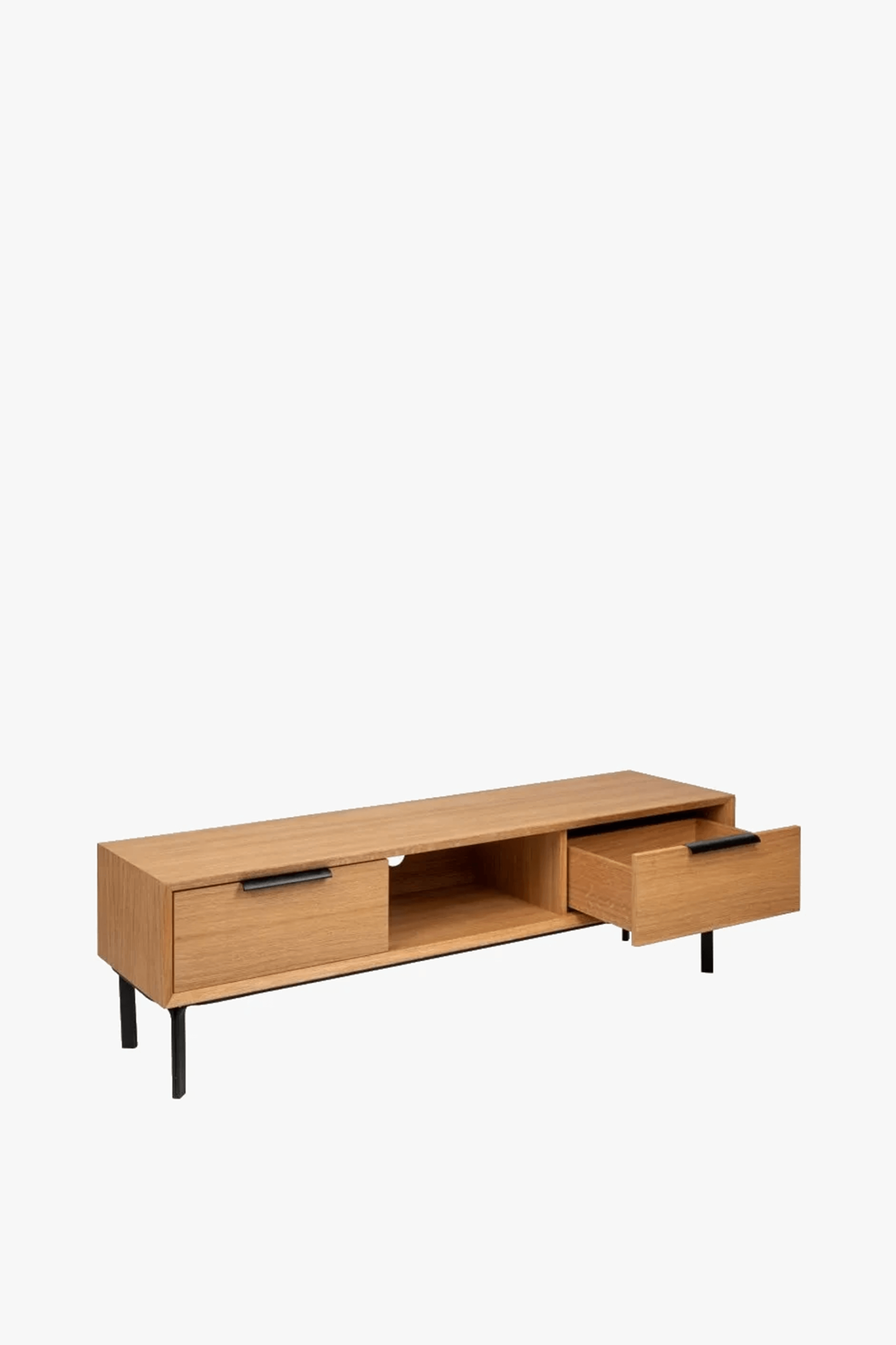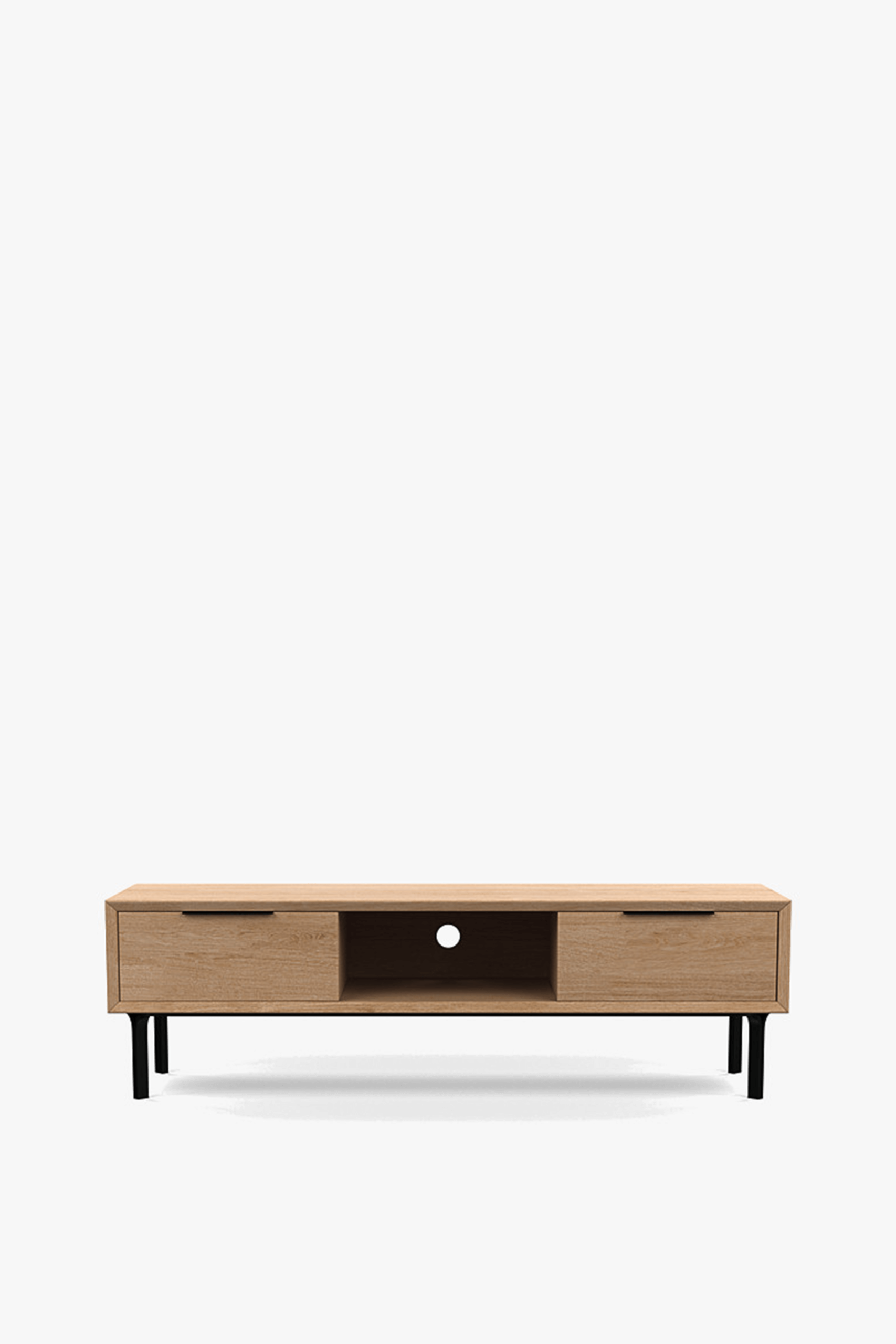 Created exclusively for Heal’s by British designer Noel Batt, the Stockholm AV Unit is available in a selection of oak and walnut finishes. Solid wood and veneers mixed with expert craftsmanship lend the unit a luxurious finish, whilst the sleek metal accents and mitre join leg that adorn the front of this sideboard, lend it a refined and contemporary finish. Stockholm will make a refined yet practical addition to your living room thanks to its two cupboards, open shelf to hold your media devices and concealed cable outlet.