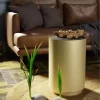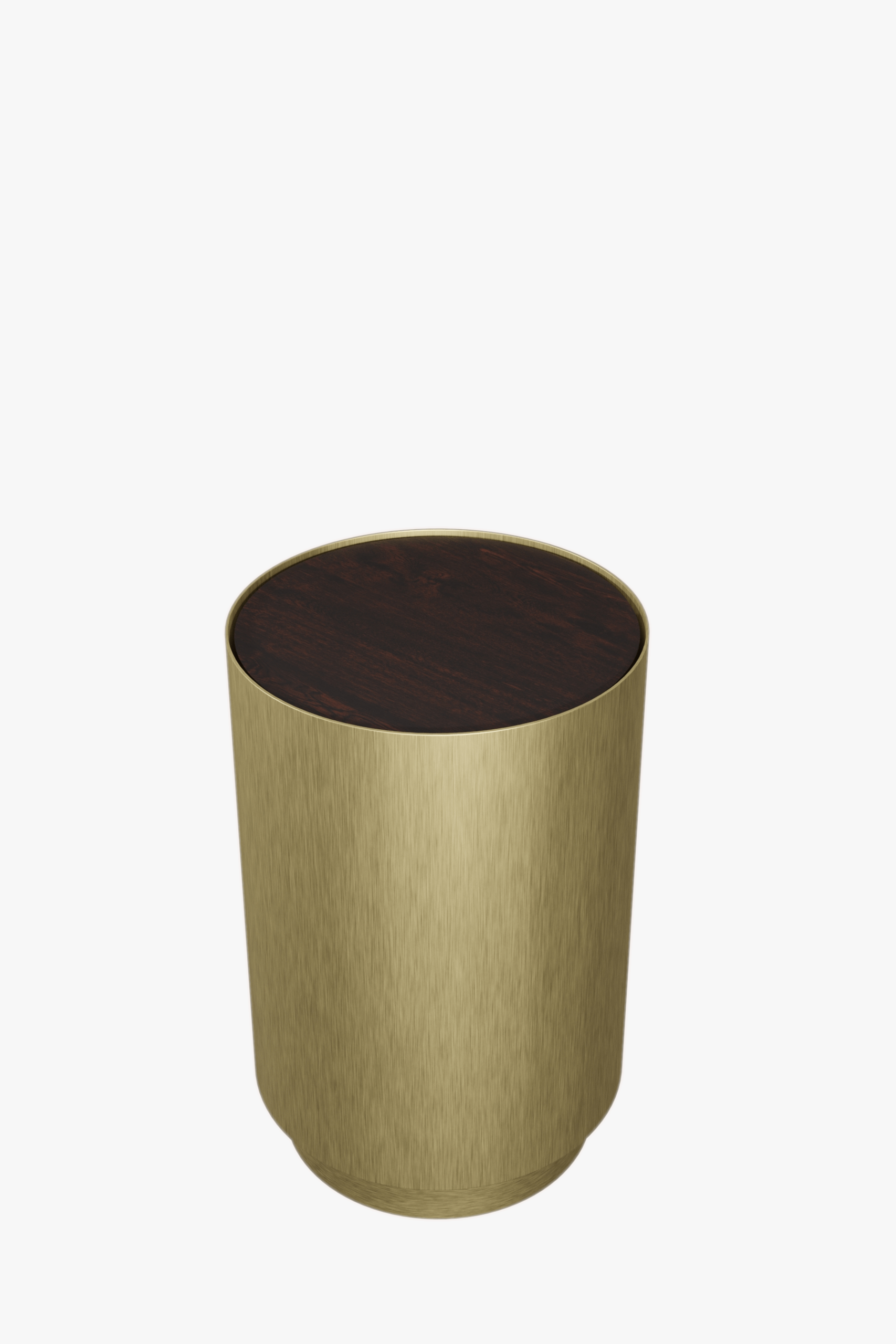 Striking in appearance the Laura Ashley Veronique Side Table would grace any setting; be it living or bedroom. Crafted from solid wood and sheet metal, it works equally well either as a standalone piece or in concert with the coffee table. Its outer is finished in a rich brushed brass colour and complemented by a dark chestnut effect fixed top. The drum sits atop an inset plinth giving the illusion of the piece effortlessly floating. A true statement side table.