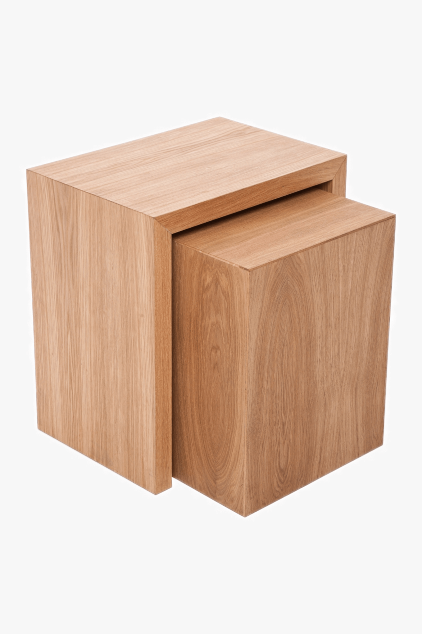 This nest of tables is crafted in chunky, solid oak and features a smooth, linseed oil finish which retains the natural beauty of the grain.