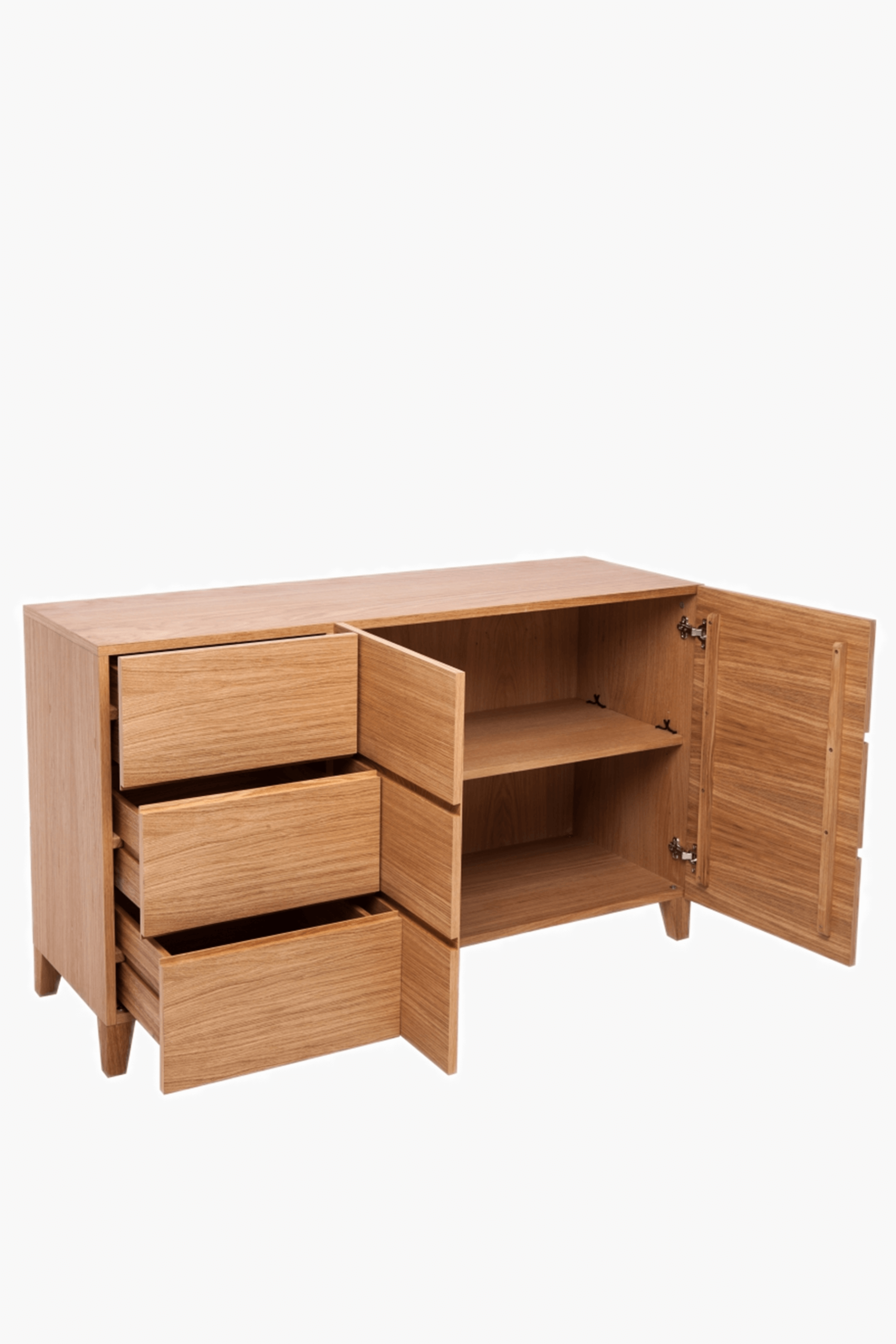 Read moreThis sideboard is crafted in solid oak and features a smooth, linseed oil finish which retains the natural beauty of the grain.