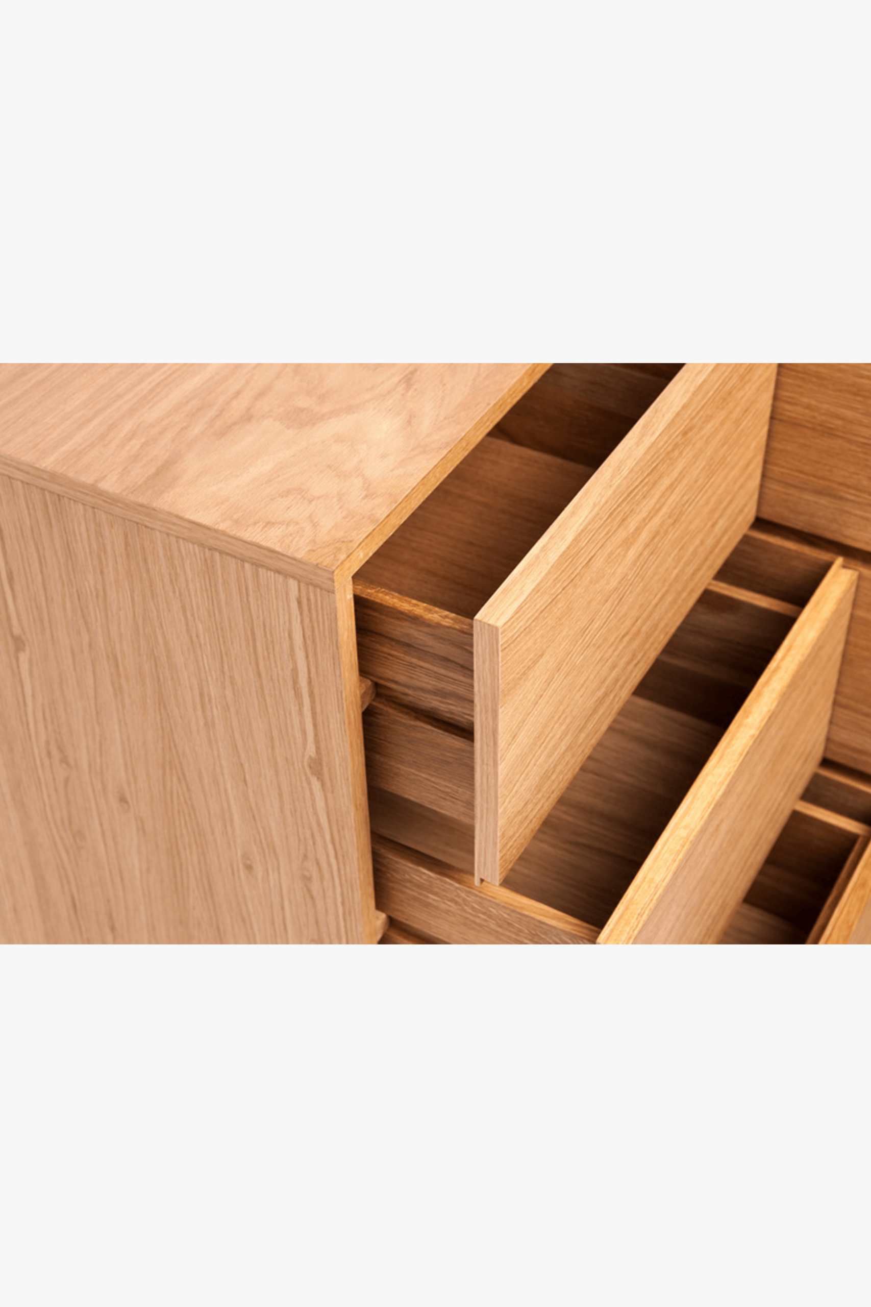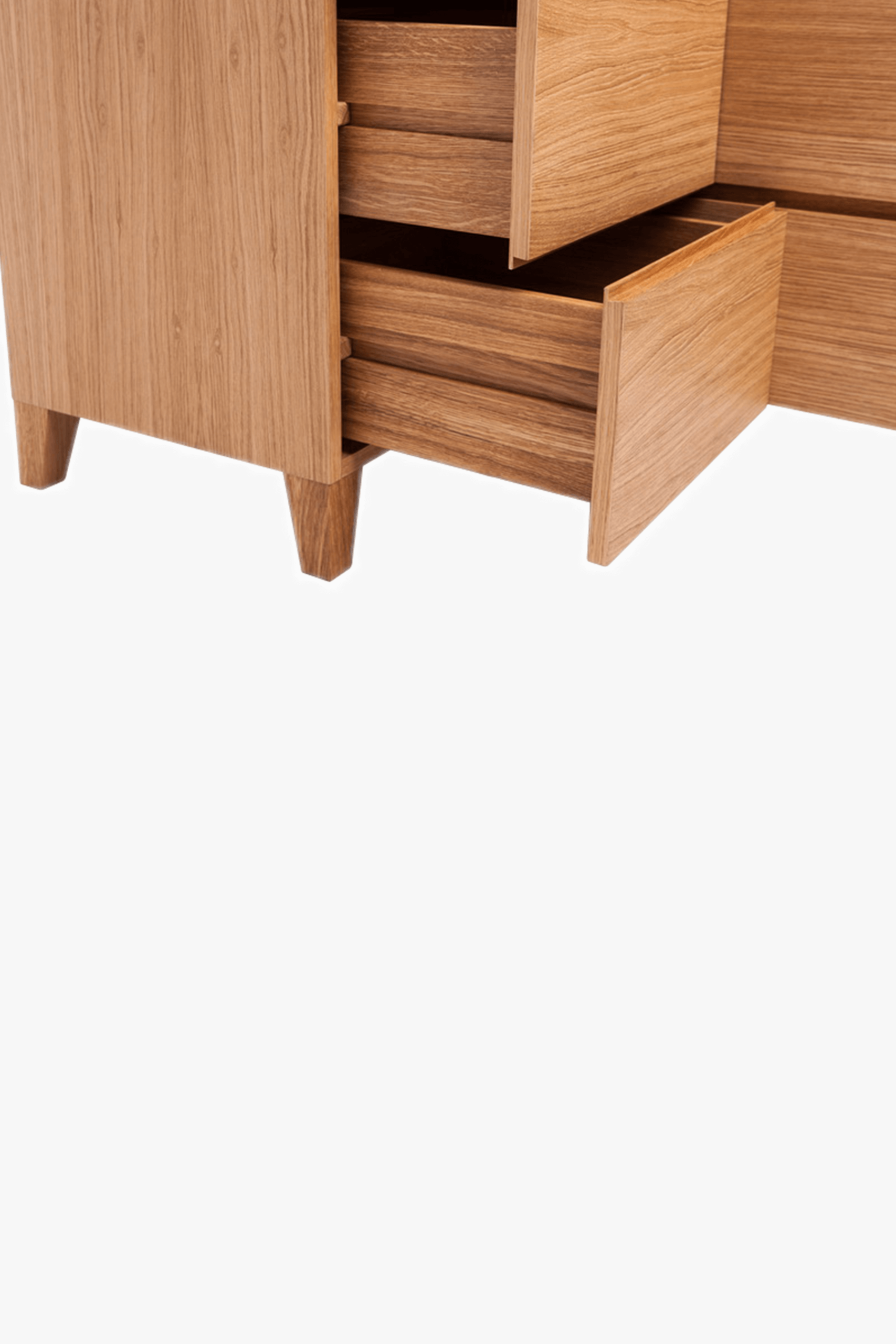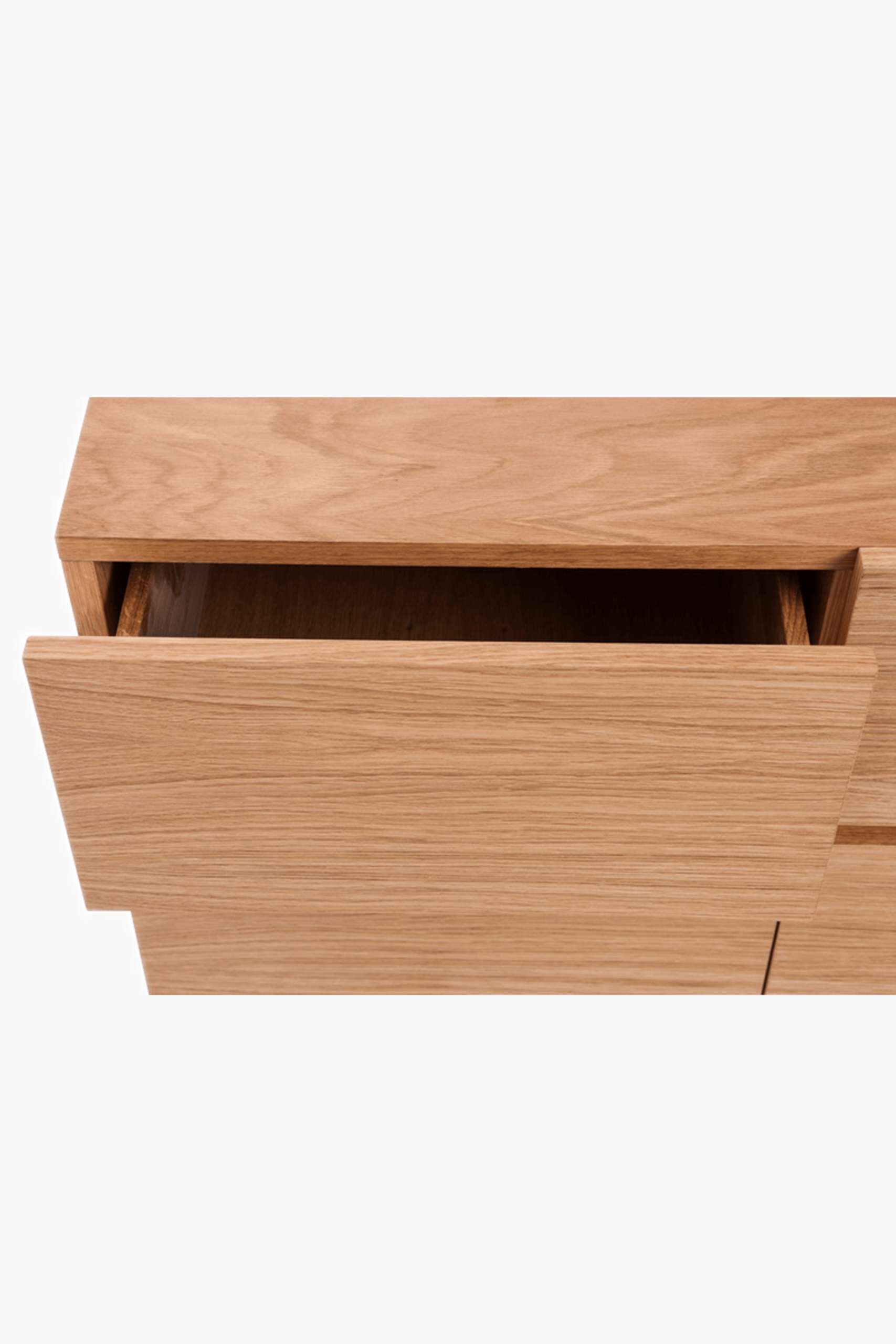 This sideboard is crafted in solid oak and features a smooth, linseed oil finish which retains the natural beauty of the grain.