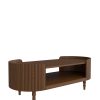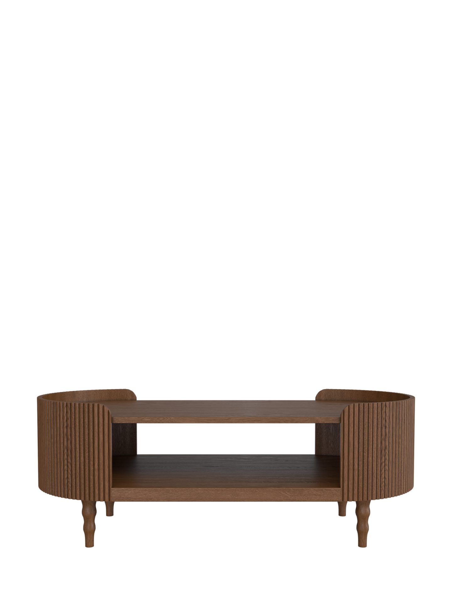 The Williamson Coffee Table offers a sophisticated and unique design coupled with a beautiful finish. This luxurious occasional piece is made from Elm solids and veneers and features bobbin-style turned legs, two useful shelves and eye-catching Art-Deco style ribbed end panels. The delightfully figured timber is accentuated with a warm teak-effect stain and a protective satin lacquer, ensuring that your investment will a talking point for years to come. Only the legs need to be attached to begin enjoying this piece; full assembly is not required