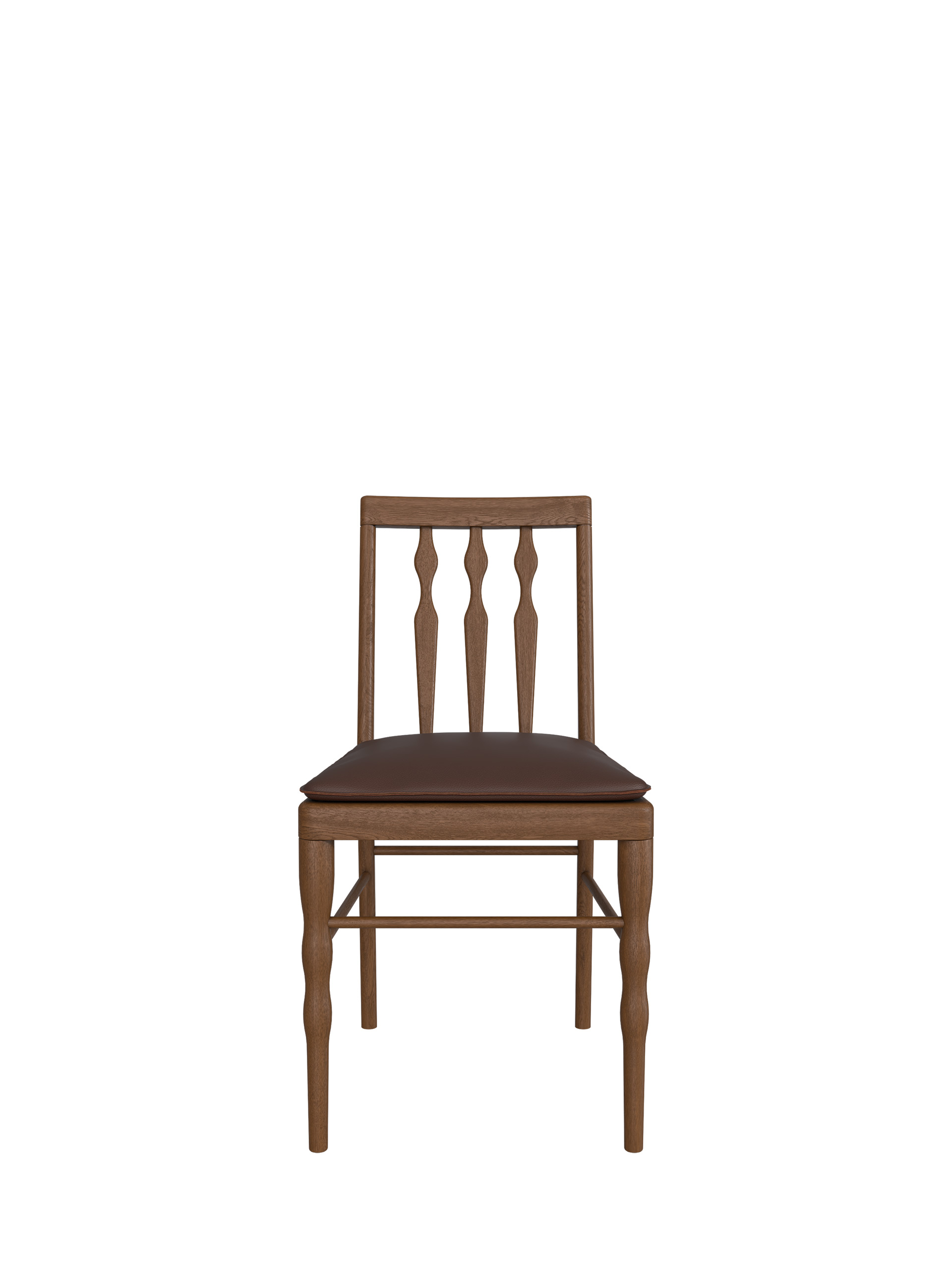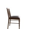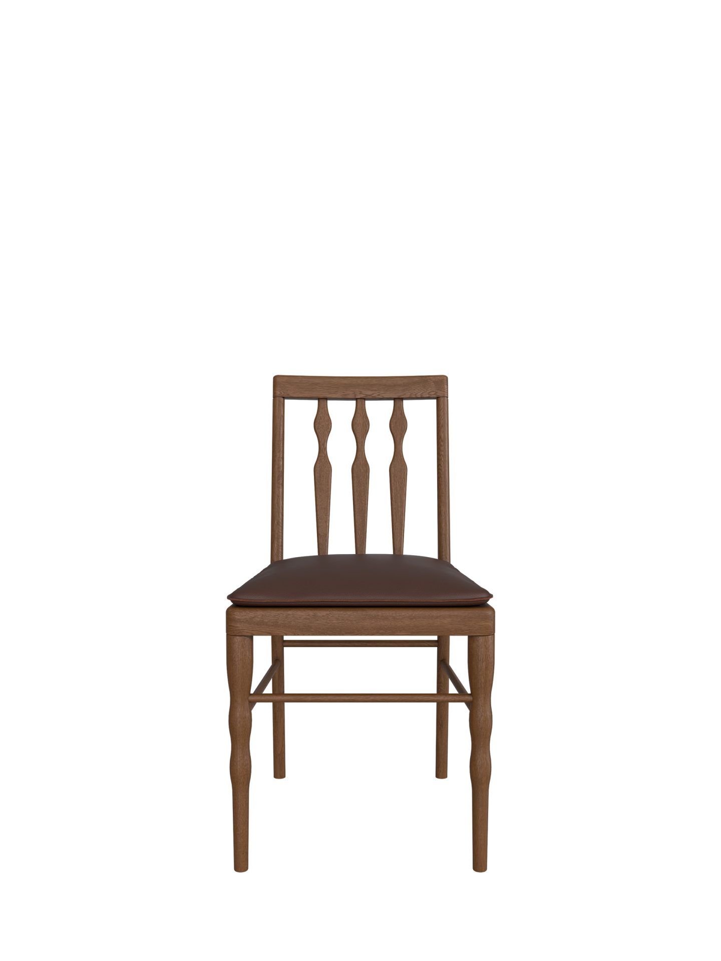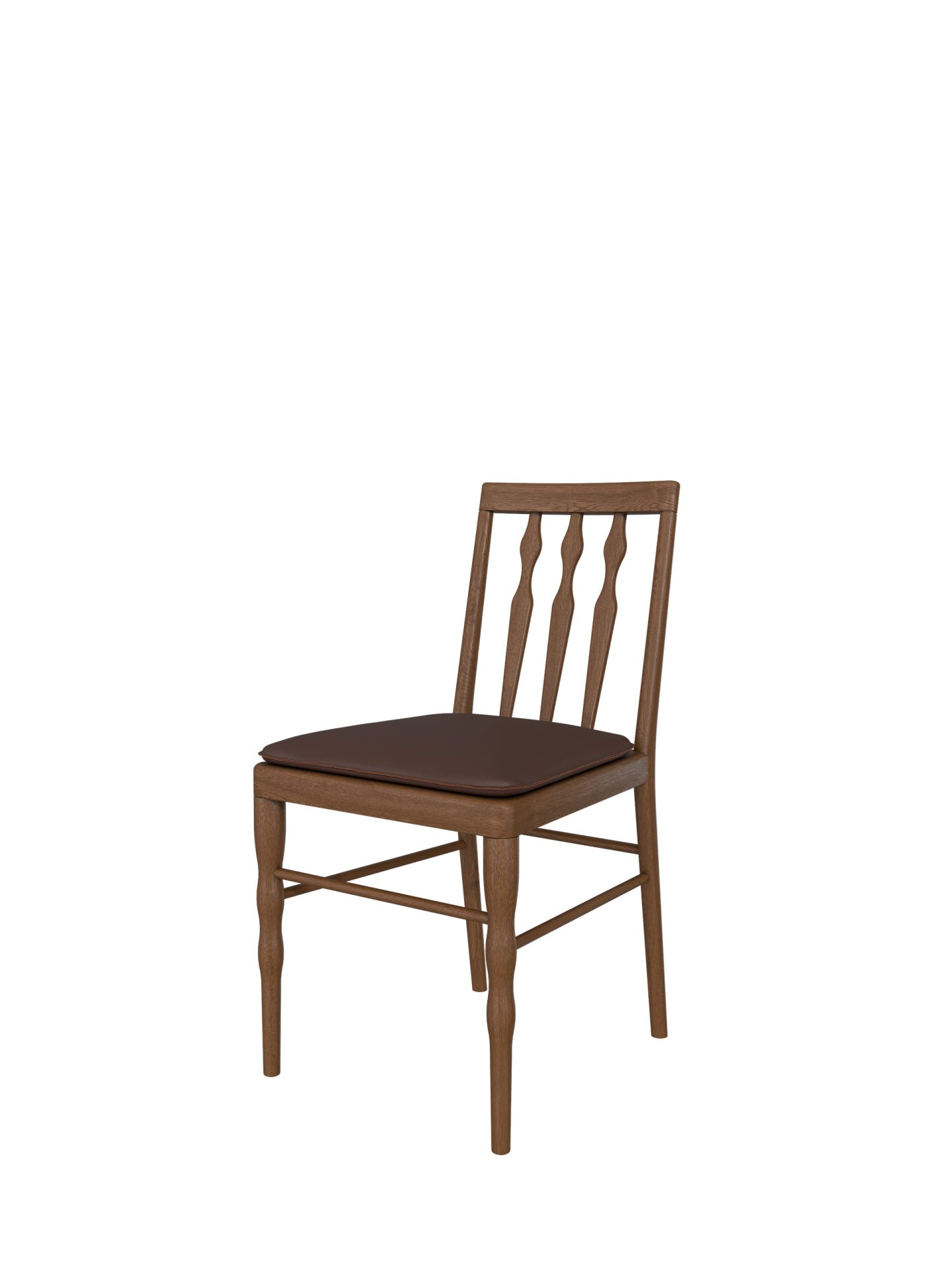 The Williamson Pair of Dining Chairs offers a sophisticated and unique design coupled with a beautiful finish. This delicate design is made from solid Elm with an Elm veneered seat; complemented with squab-style tie-on leather seat cusino. Bobbin-style turned legs and matching shaped spats in the back rest complete the connection to the rest of the range. The delightfully figured timber is accentuated with a warm teak-effect stain and a protective satin lacquer, ensuring that your investment will a talking point for years to come.
