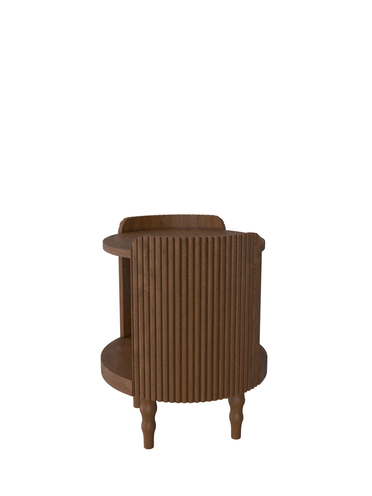 The Williamson Side Table offers a sophisticated and unique design coupled with a beautiful finish. This luxurious occasional piece is made from Elm solids and veneers and features bobbin-style turned legs, two useful shelves and eye-catching Art-Deco style ribbed end panels. The delightfully figured timber is accentuated with a warm teak-effect stain and a protective satin lacquer, ensuring that your investment will a talking point for years to come. Only the legs need to be attached to begin enjoying this piece; full assembly is not required.