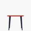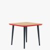 Finish – Top in natural lacquered oak, edge in Red RAL 3028, legs in deep blue RAL 5008